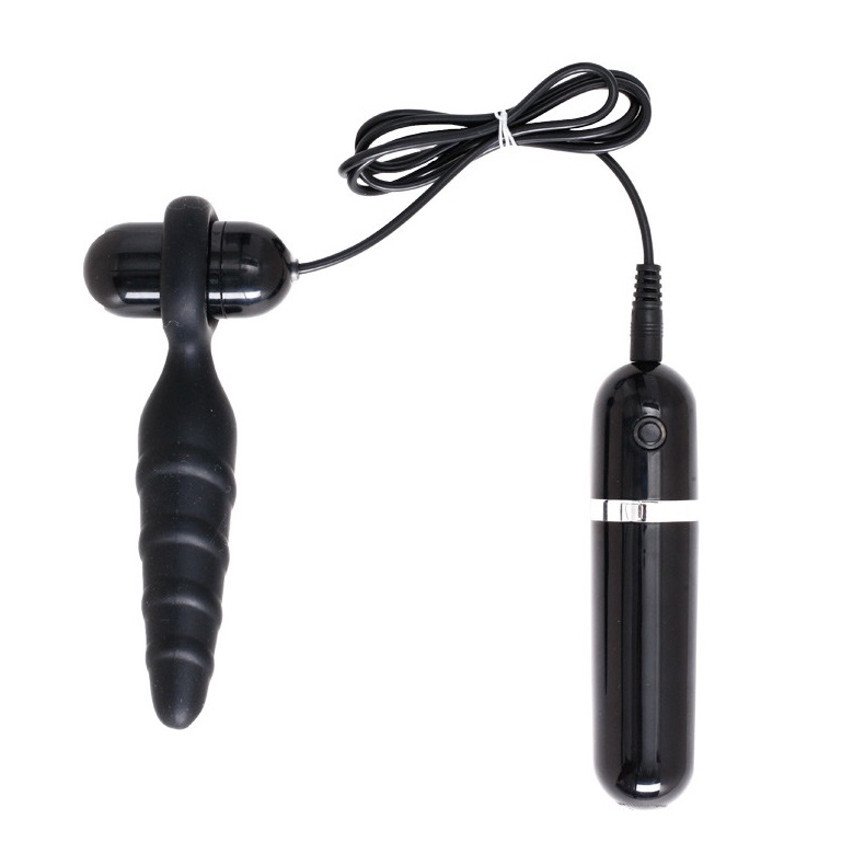 Dark Stallions 4 Inch Silicone Butt Plug with 10 Function Bullet Black