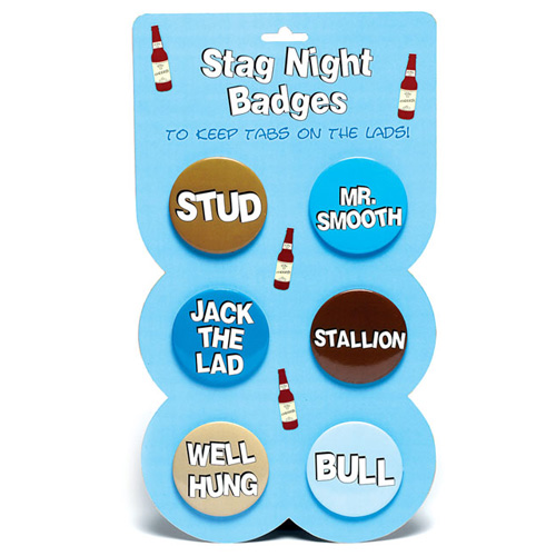 Dont let yourself and the boys be seen out on the town without one of these Stag Night Badges. Impress the ladies around you by letting them know just what kind of guy you are by wearing one of the following badges from the pack of 6 Stud. Mr Smooth. Jack The Lad. Stallion. Well Hung. Bull Why not buy the whole fantastic range to make the Stag Night extra memorable.