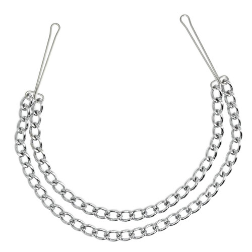 Silver nipple clamps and Double chain which just easily attach to the nipple